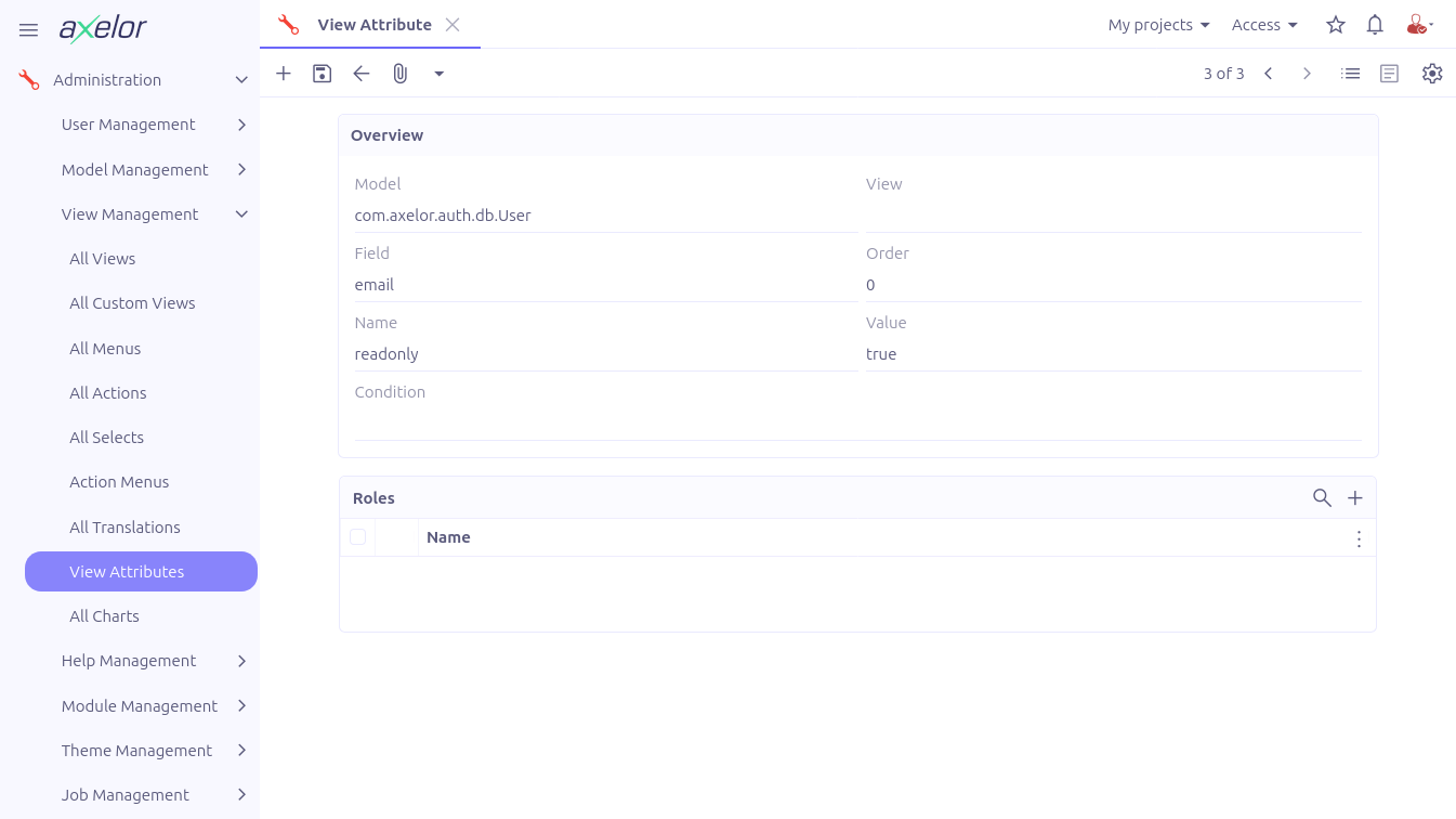 Roles (Optional) - A set of user roles on which this view attribute will be applied. If empty, the view attribute will be applied to all the users.